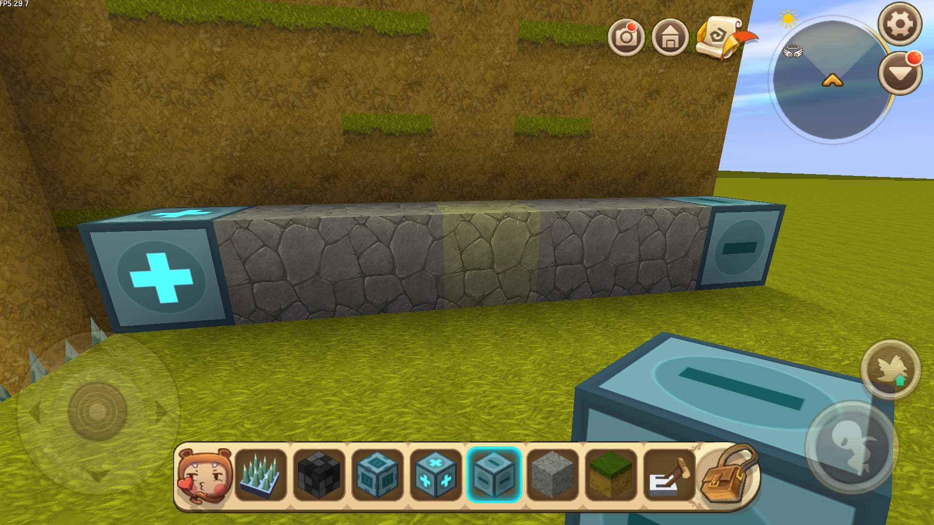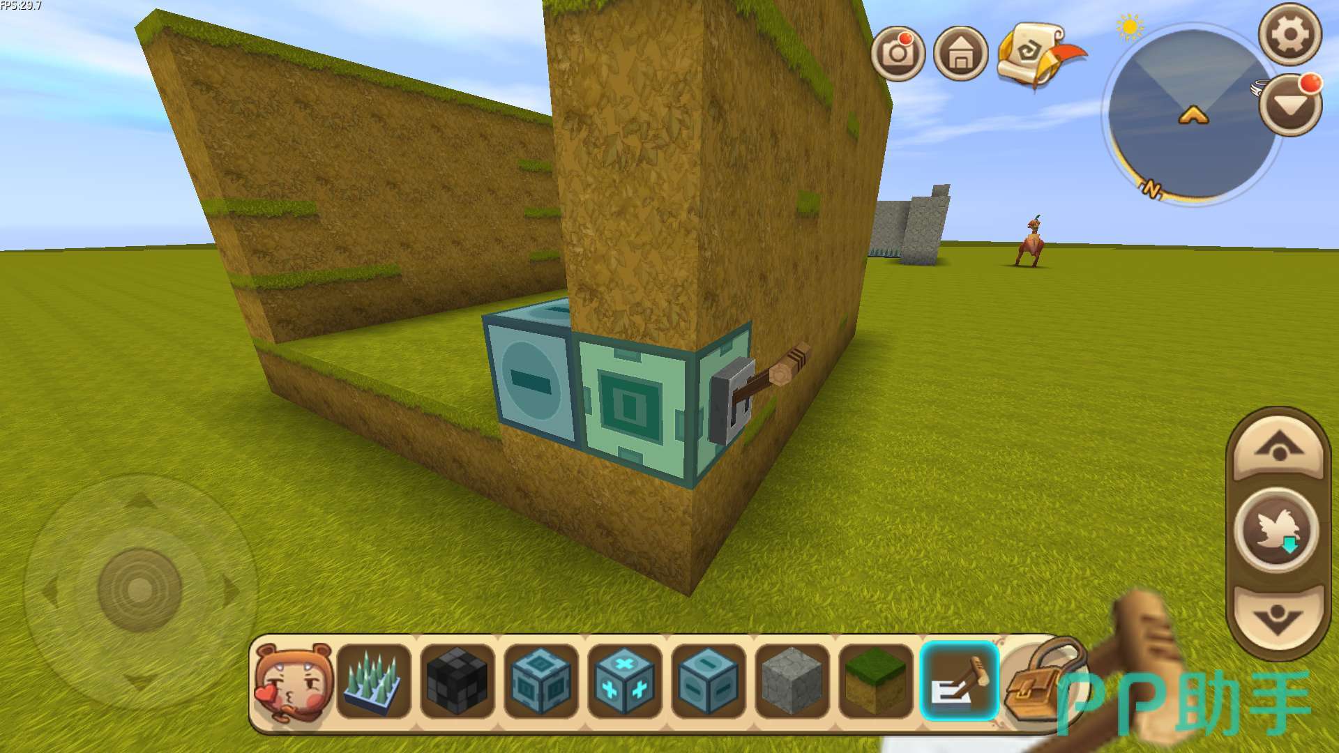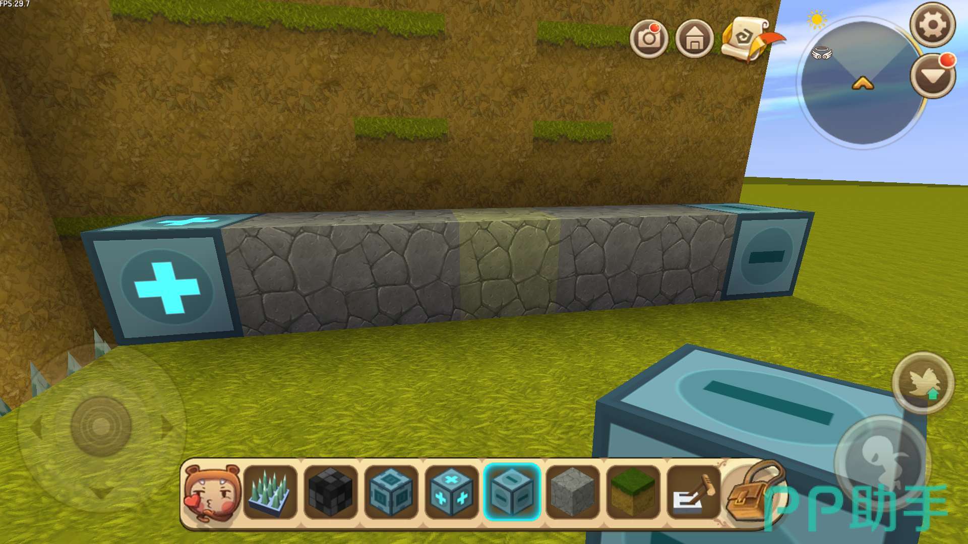 (4)出来在标记器(-)的位置,将泥土块拆掉一个,放上滑动方块,再装上开关。