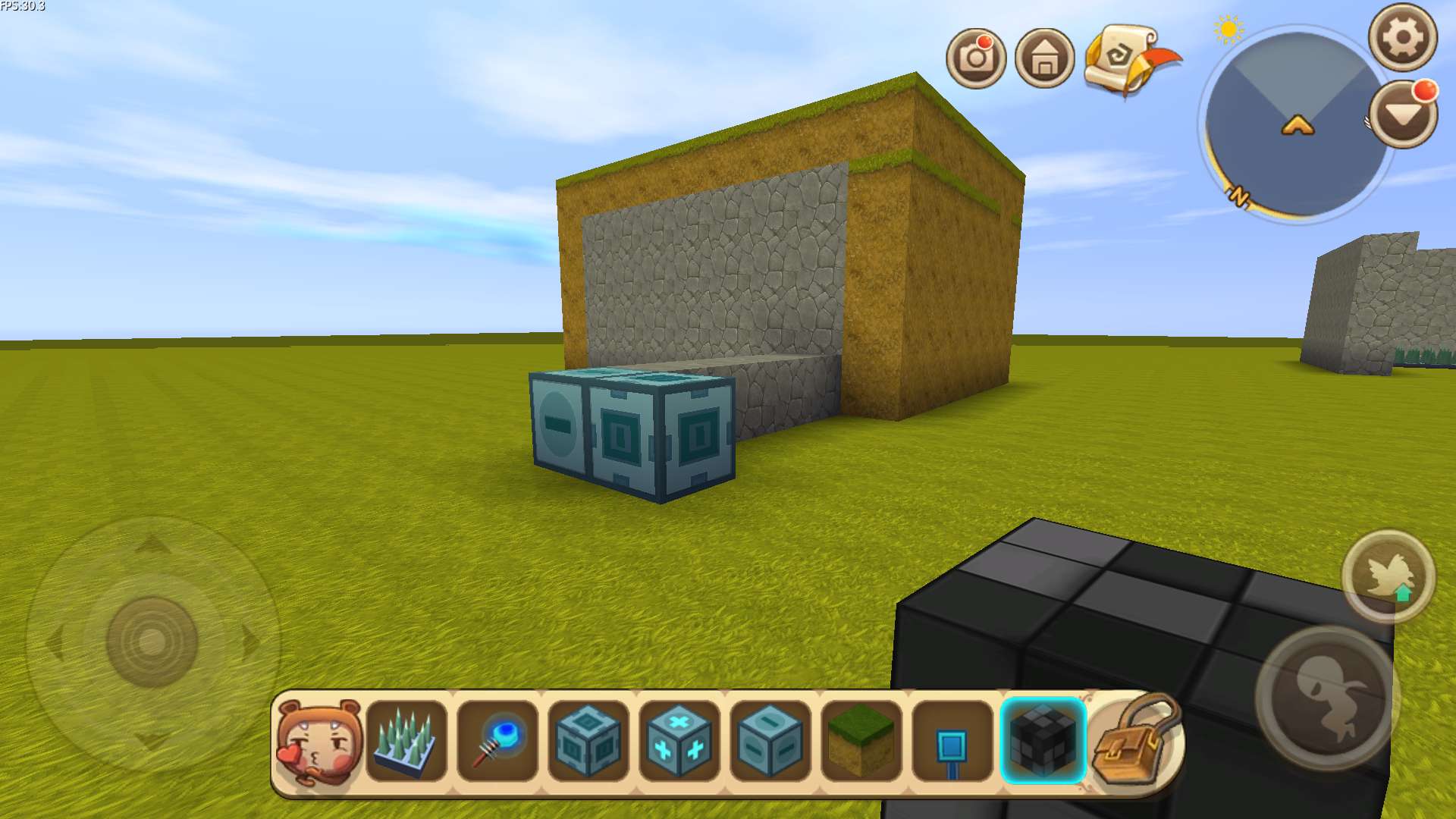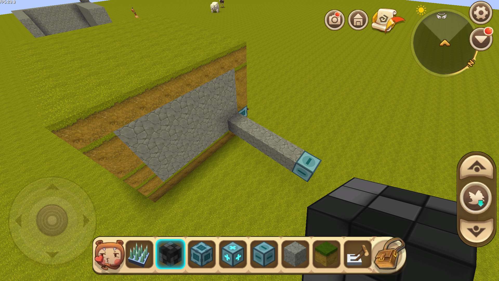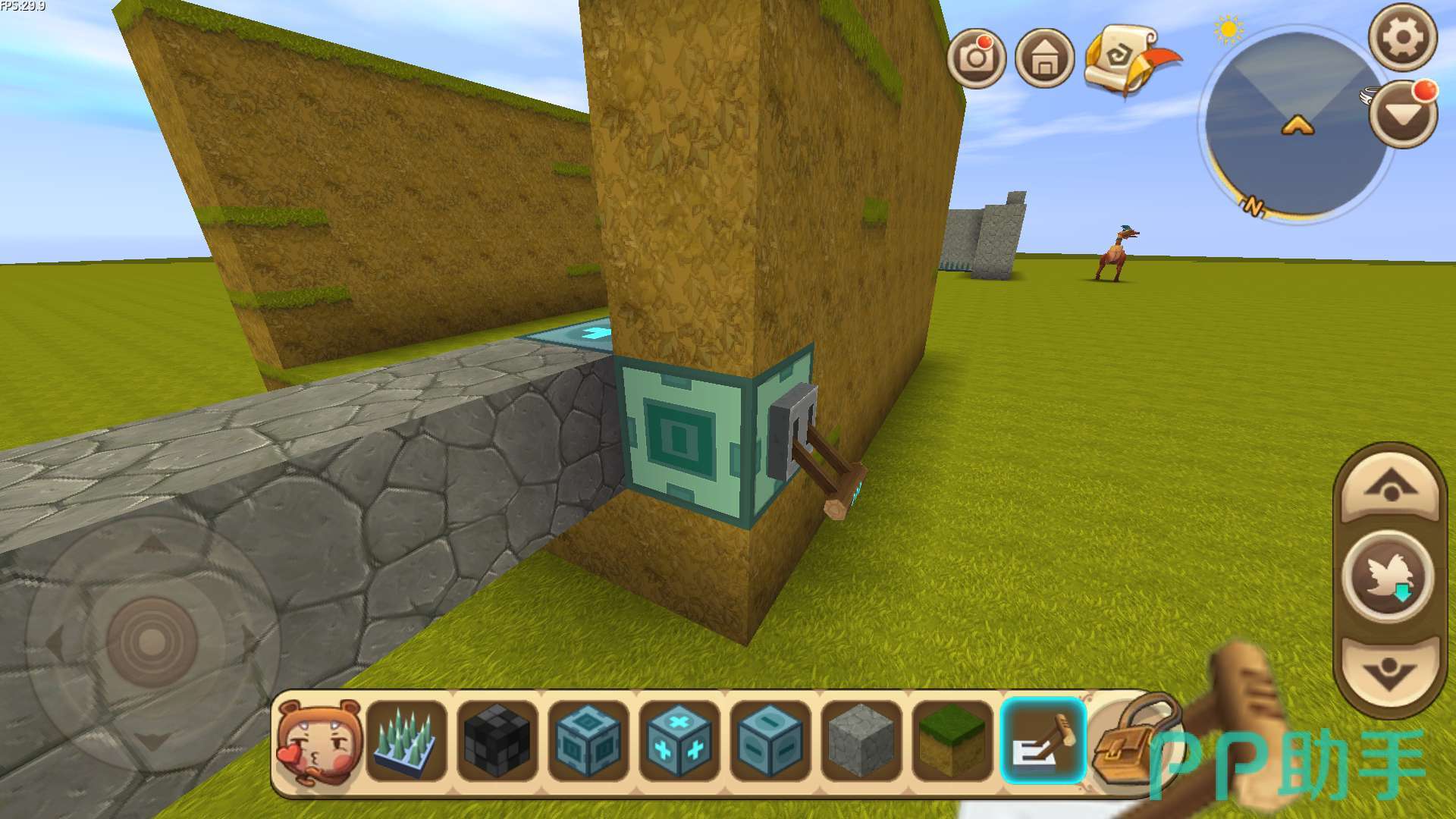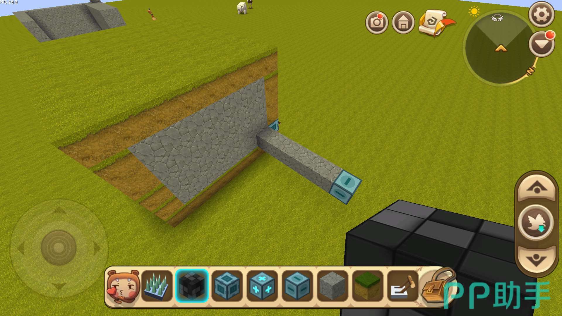 (4)出来在标记器(-)的位置,将泥土块拆掉一个,放上滑动方块,再装上开关。