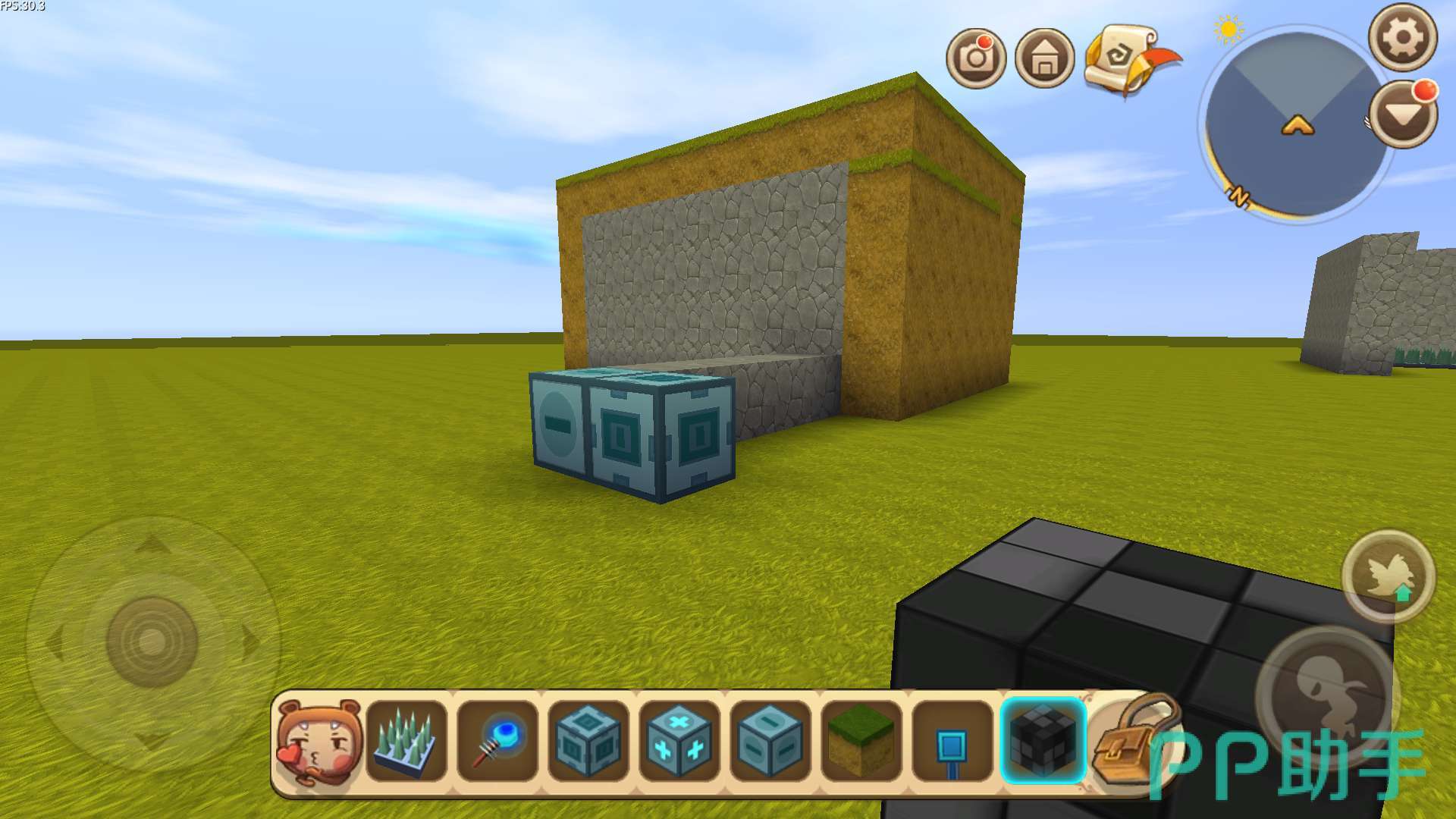 使用岩石块将空缺的一个面建好墙,同时使用泥土快将刷怪塔顶部封起来。
