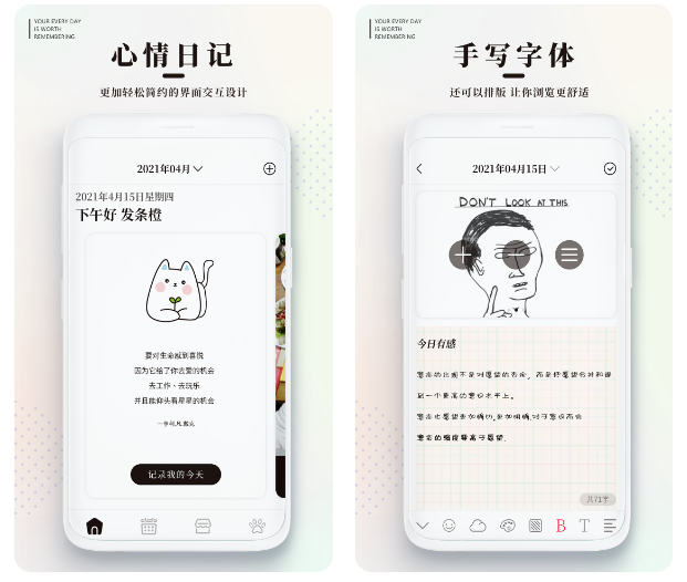 这是一本可爱的日记,可以记录日常生活中发生的事情,也可以在网上记账,了解自己的日常开销,最关键的是,它可以根据自己的喜好,改变自己的文字和主题,在特定的日子里,留下自己独特的痕迹。