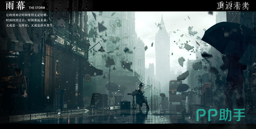 在给大家分享一张场景立绘。这张立绘的背景描述是这样的,在1999年的最后一天,暴雨降临了世界,地面无辜升起积水,水却飘向了天空,行人和墙壁在这场暴雨中溶解,世界似乎赞停了,暴雨过后只剩下你一个人,这张本就足够经验的立绘在配合故事背景后拥有了更加浓厚的色彩