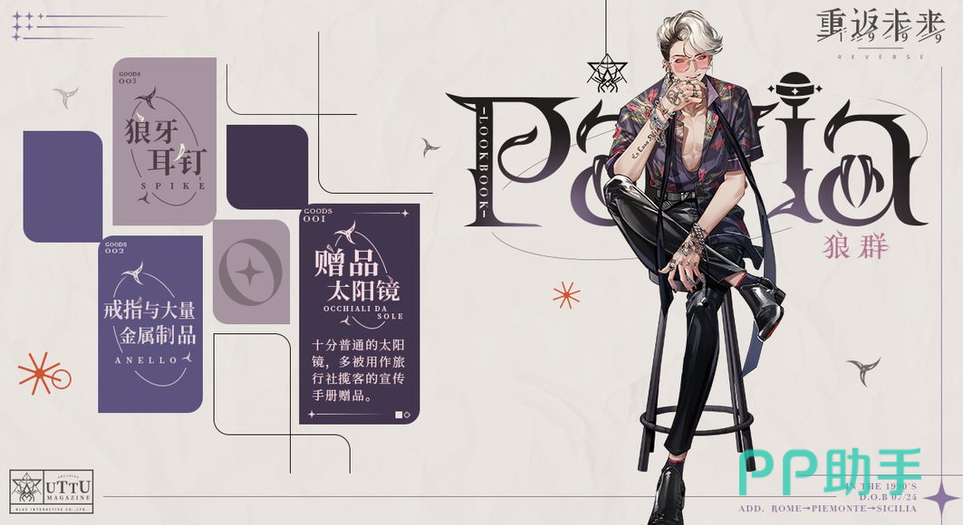首先是一张人物立绘,从图上可以看出这名名叫狼群的神秘学家,穿着非常的华丽,花色衬衫,搭配黑色西裤黑皮靴,手臂和手上印了少量纹身,发型非常的时尚,佩戴了狼牙耳钉和大量的金属制品,整体画面非常的美型舒适,人物立绘精美。