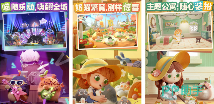 《猫咪公寓2》中的公寓里生活着玩家们扮演的小姑娘还有超级多的可爱猫咪,这些猫咪都是玩家们在游戏里收集到的,在游戏中玩家们要亲自体会到真实养猫的辛苦感觉,需要照顾小猫的吃喝拉撒,还需要动手给小猫们搭建一个个猫窝,游戏里的小猫非常粘人,经常会跑到玩家角色的脚边蹭呀蹭。