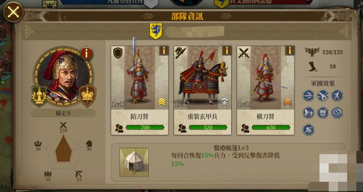 大家在游戏中的战力需要利用兵种组成军队来升级,其中的部队就是大家可以派遣的军队,这个部队的组成需要大家根据兵种的特性来搭配,游戏中一共有六大兵种,大家想要进行搭配有各种搭配,比如两种近程步兵搭配一种骑兵就是最经典的部队阵容。