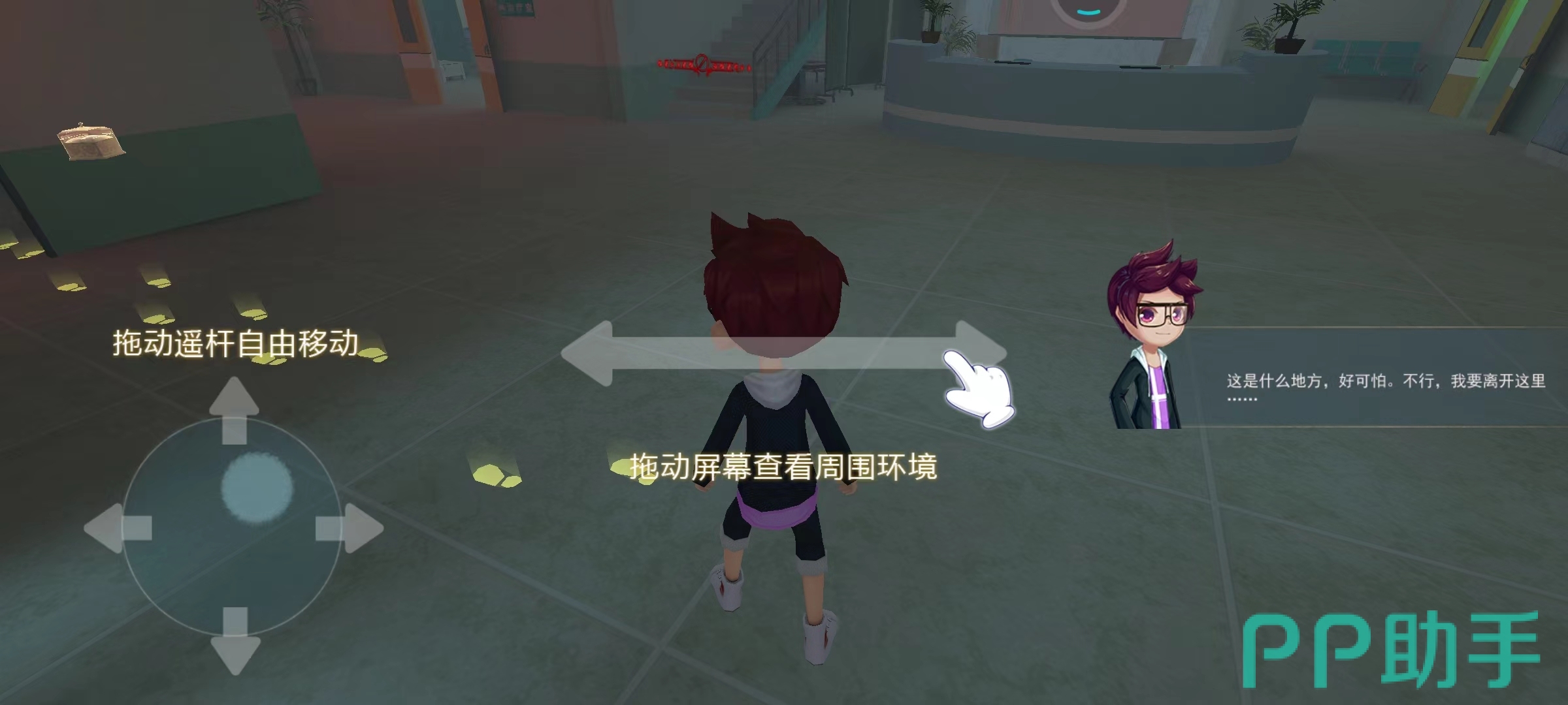 不管我们选择了哪个游戏角色,我们的视角都是第三视角,屏幕左下角控制方向,拖动中间部位可以查探周围的环境是否安全,在右边部分是我们所选角色的内心独白,设置都是十分合理的,在昏暗的环境下我们可要灵活运用这些功能键,才能更好的通关游戏。