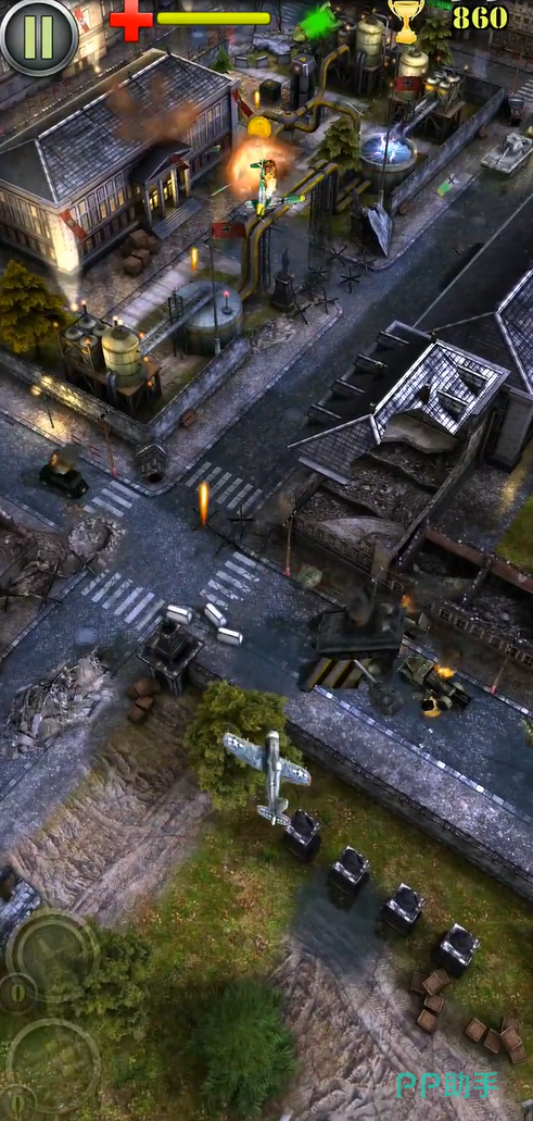 它的3D画质也是一大亮点,游戏以俯视视角在城市上空飞行,由于飞行的高度并不是很高,所以很多街道包括建筑上的细节都清晰可见,除了空中的敌人以外,有时地面也会出现坦克这类重型武器对玩家的飞机进行轰击,所以需要及时做出闪避。