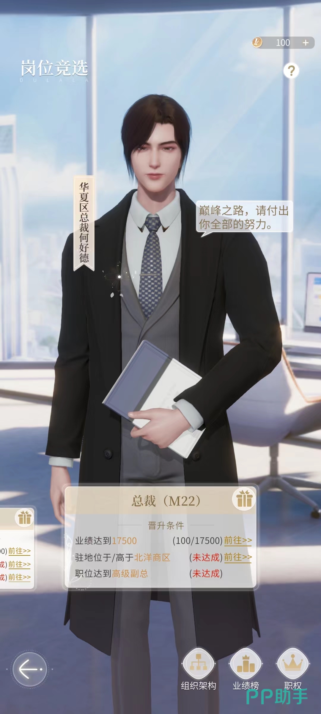2.晋升方式:可选择本级内任一岗位报考,同时可报名参加总裁竞选,报名后通过随机匹配与其他玩家竞选(PVP),根据积分录取排名靠前的玩家。