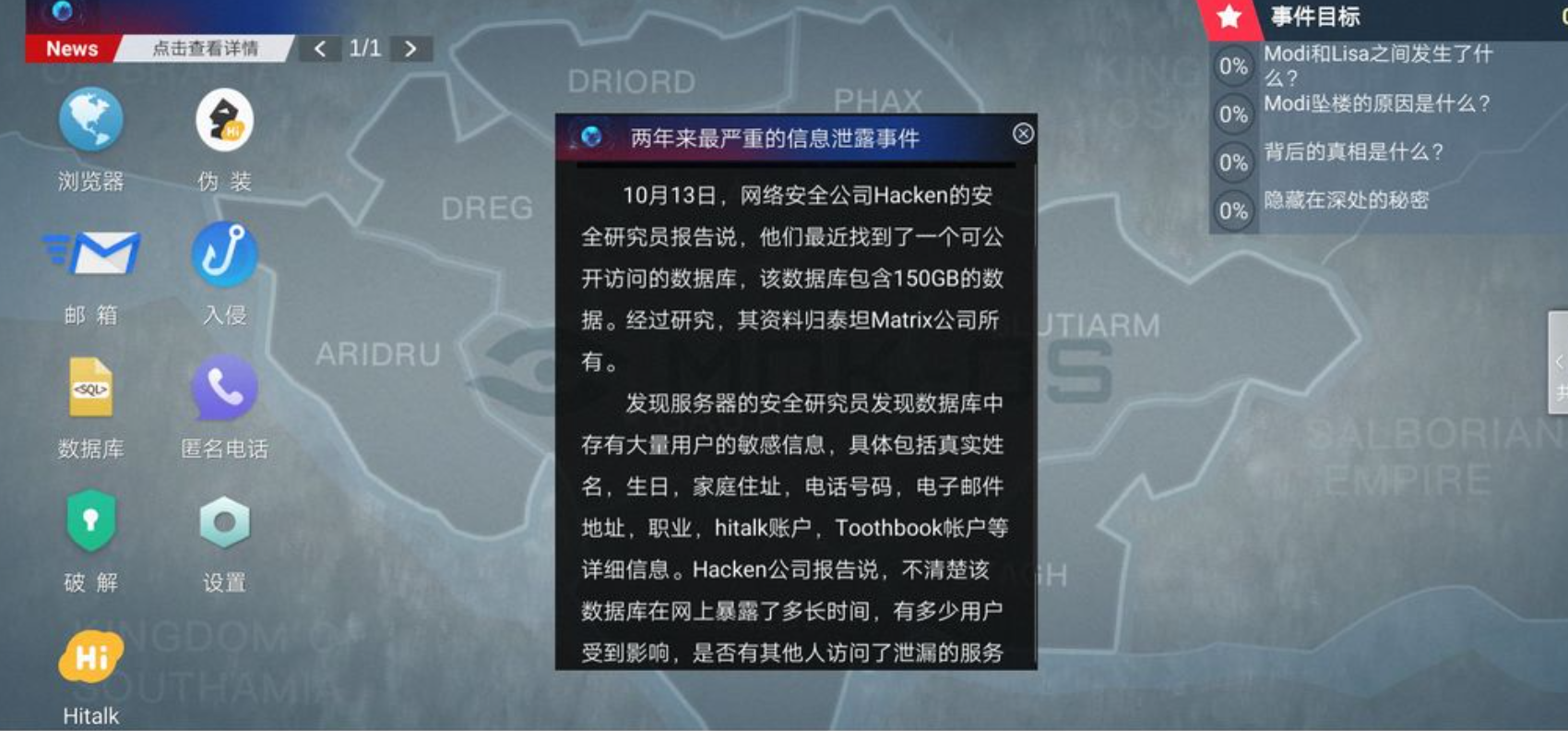 游戏融入黑客的身份进行一系列操作盗取他人信息的故事,衔接不突兀,入戏也循序渐进。在运用各种不同软件寻找信息的时候现实感拉满,代入很强,好像不是黑客,而是在做日常吃瓜做的事而已。因此玩家们可以放心大胆的进入游戏游玩。