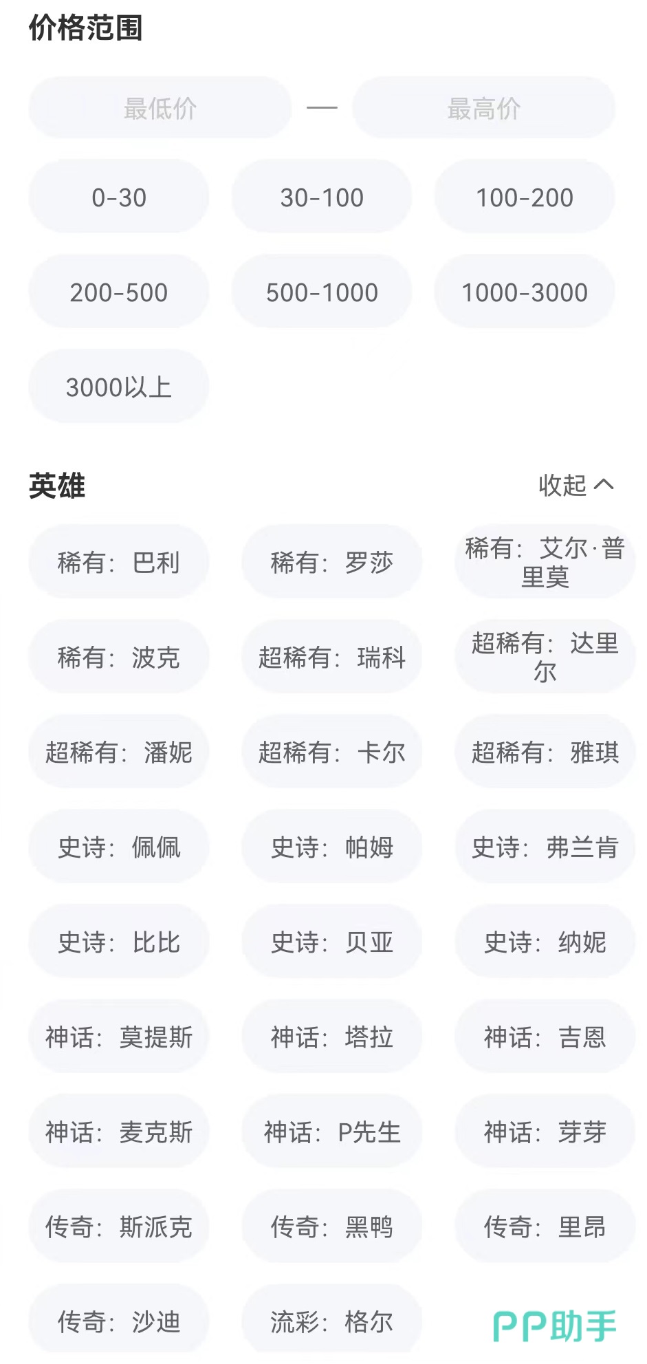 除了账号出售的时候可以在这里进行价格方面的估计外,如果想购买商品也可以提前查看。同样是选定需要的稀有英雄,然后再筛选出的结果中逐项查看,只要确定这些账号满足要求,可以再进行一下价格的排序,这样就能将最有性价比的那一部分找出来。这样就不用担心在交易过程中的价格方面吃亏。