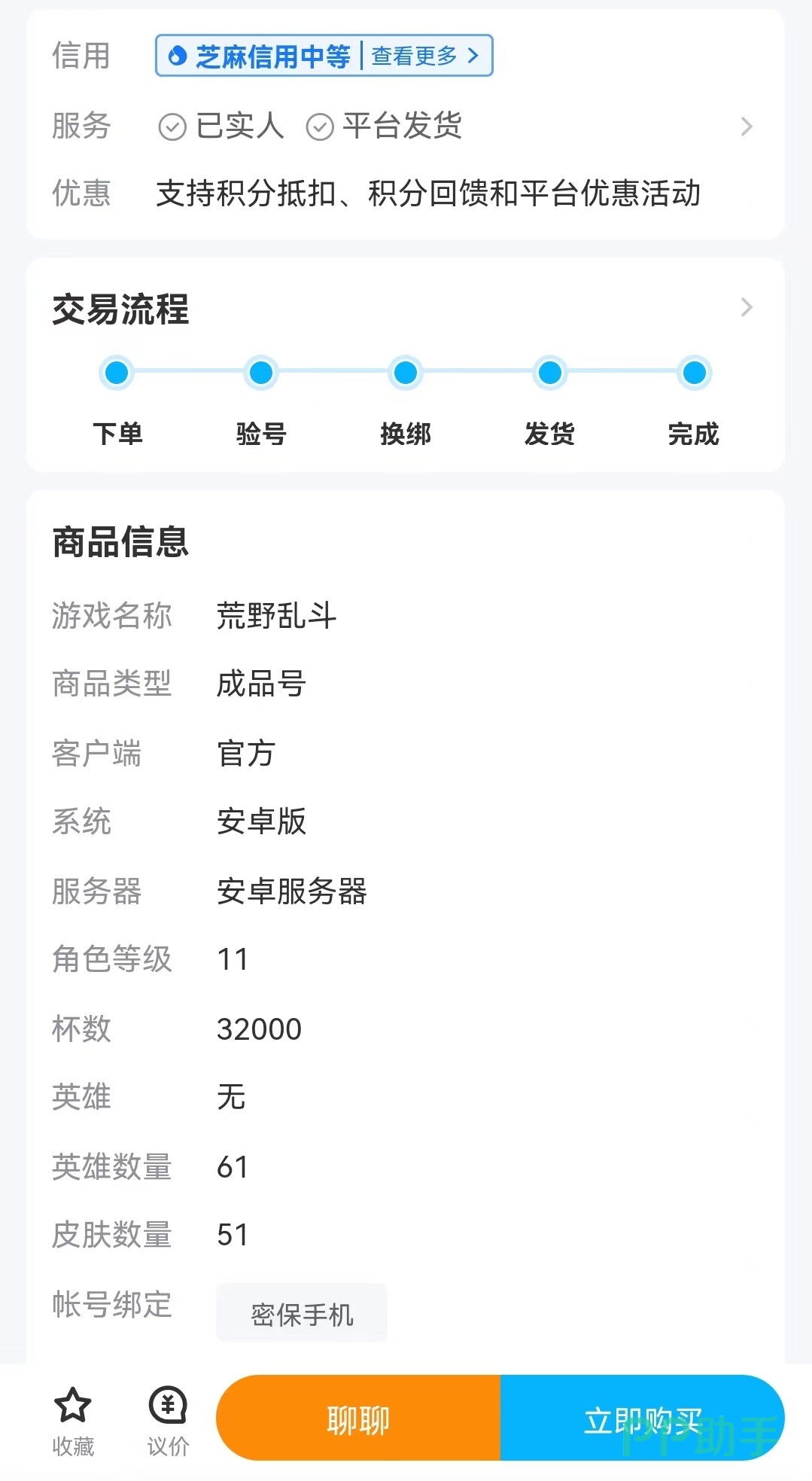 在荒野乱斗的成品号专区里,虽然上架的商品数量众多不过寻找起来也很方便,因为在筛选中提供了稀有英雄选项。在这里只需要根据自己账号的情况进行点击选择,寻找出来的就是非常相似的商品,看一下对方的售价就能做到心中有数。在账号的详情中也有很多基础内容,包括当前角色等级,拥有的杯数和英雄数量以及皮肤数量等,在各个参数上做到大致相似那么最后的价格也就相差不远。