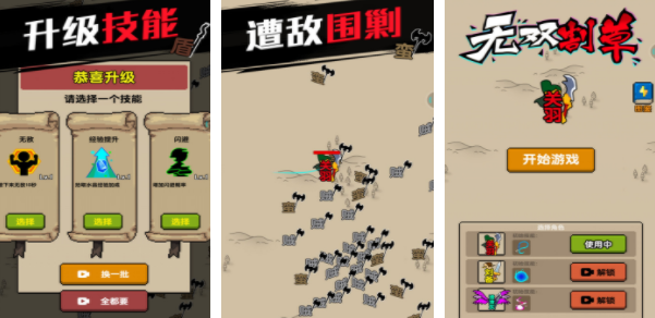 《无双割草》这是一款非常休闲的多角色扮演小游戏。游戏中有好多先进的武器和各式各样的游戏道具,玩家可以这些游戏武器和道具,根据不同的等级道具和武器结合生成更高级的武器和道具,去征服强大的敌人。高度逼真的画质,狂暴的技能释放效果,让你体验从未体验过的游戏效果。是一款不可多得的,及简单好玩又非常解压的小游戏。