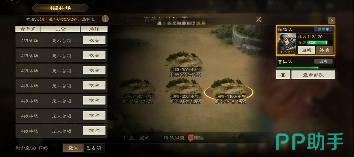 说到这个林区,就需要玩家们去与山贼进行对抗才能够占领了。大家需要带着部队,与他们进行决斗,这里要注意带一些比较高级的将领,因为等级越高,我们占领的林区也会越好,自然能够获得更多的木材资源。