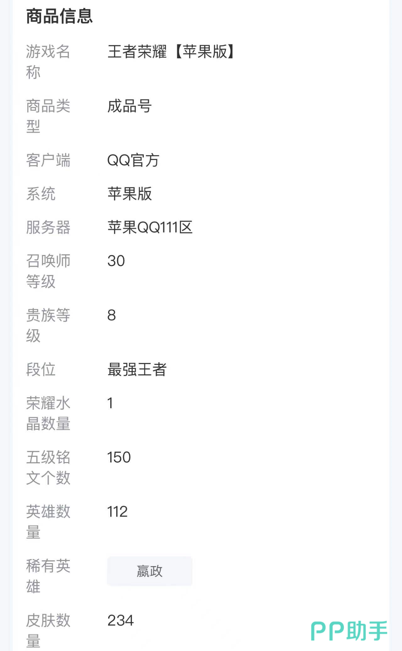 交易猫里的账号类型非常丰富,有铭文等级都是全满的成品号,让你瞬间体验更舒适战斗过程。然后皮肤号自然也是存在的,特别是凤求凰的低价账号,让你可以用更便宜的价格,就可以快速地购买到。不用担心没有账号可买。
