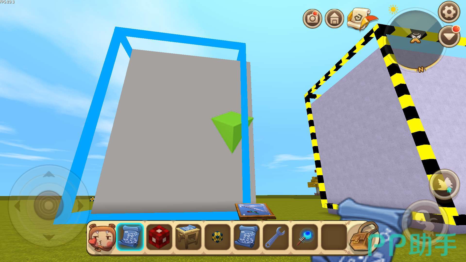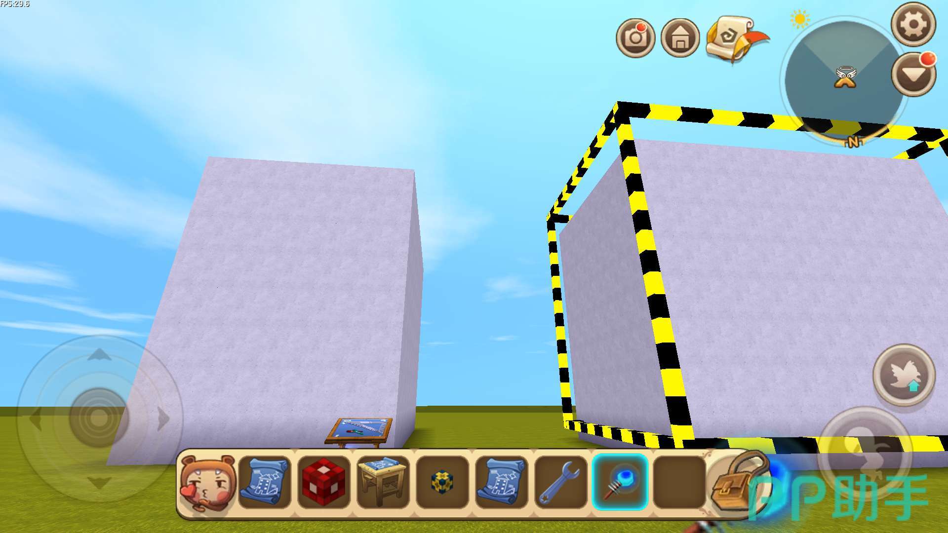 拿着建筑图纸点击空地之后,就会弹出建筑的形状。使用扳手可以改变建筑的方向。