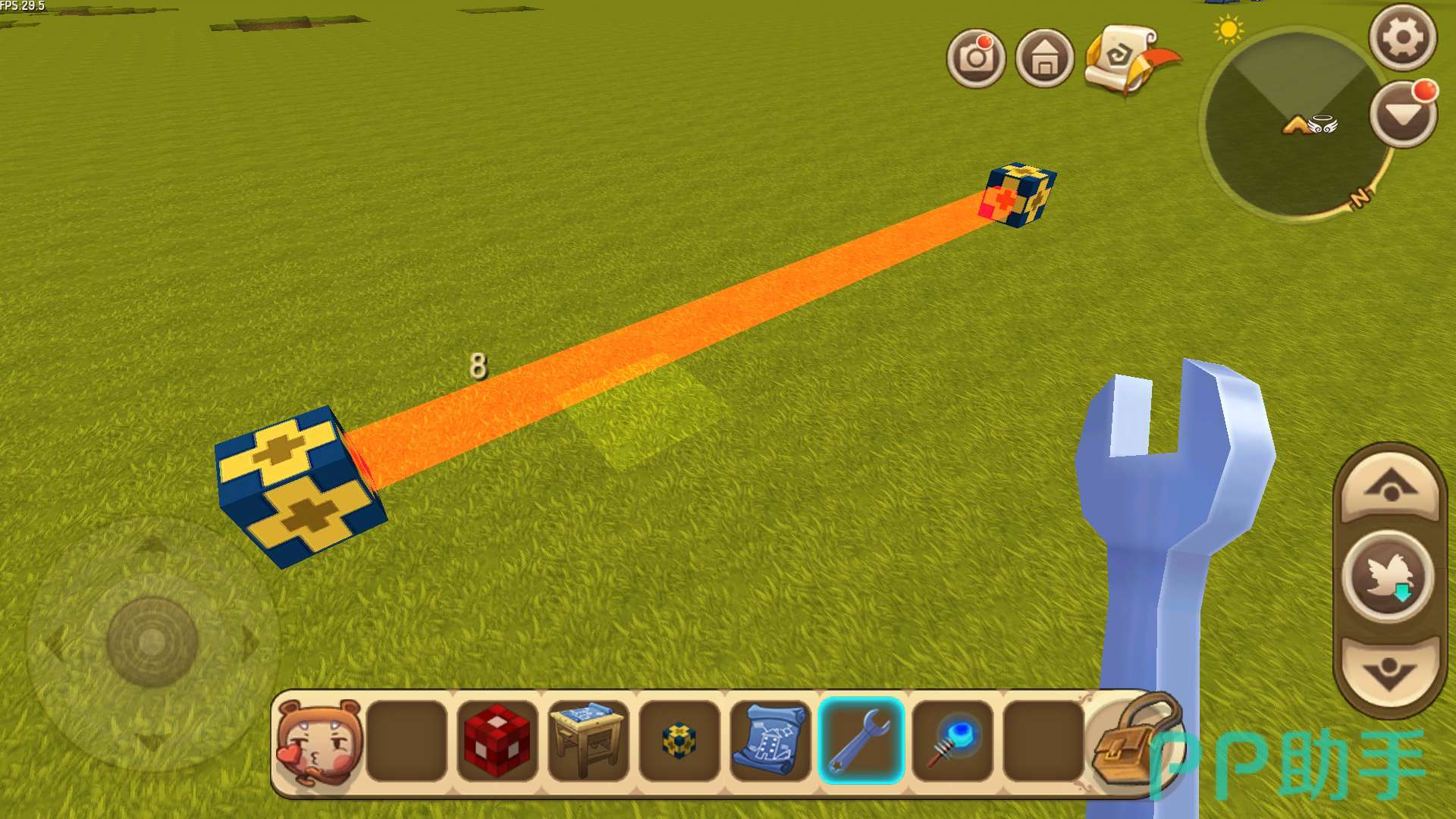 测距仪,顾名思义,就是测量距离的仪器。将两个测距仪放在同一条直线上,测距仪就可以显示出两个测距仪之间的长度有几个方块。