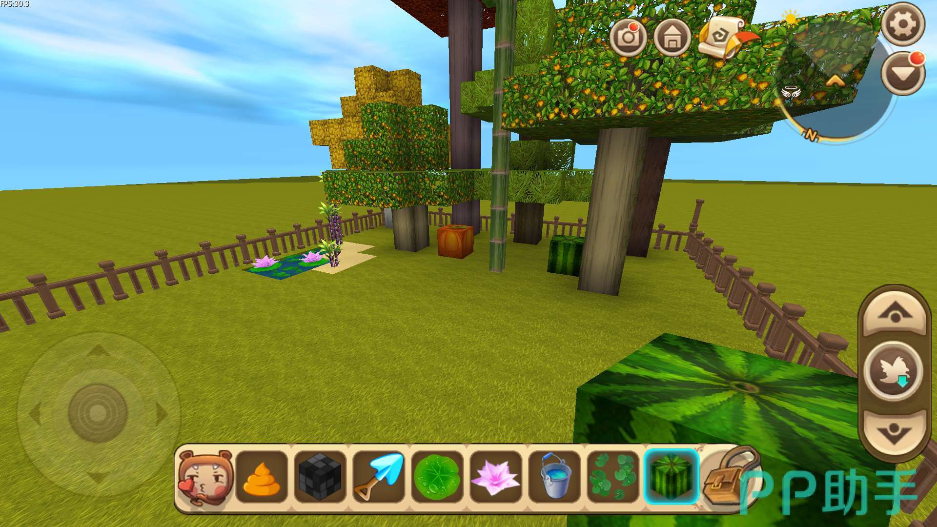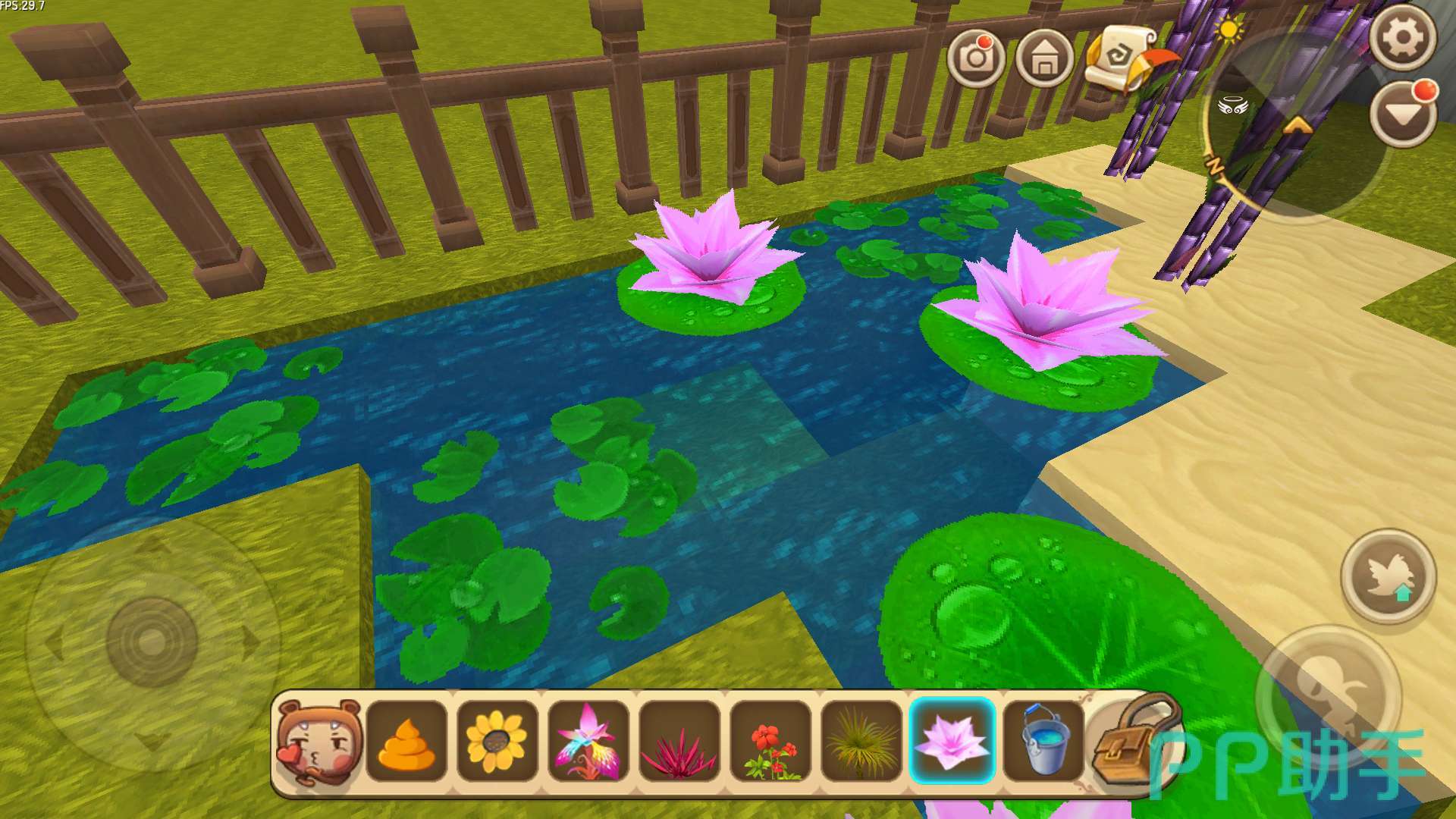 树木的一角就建造好了,接下来小编在植物园的左侧开辟了一个水池,在水池边种植上了甘蔗,水池上种了荷花和浮叶。
