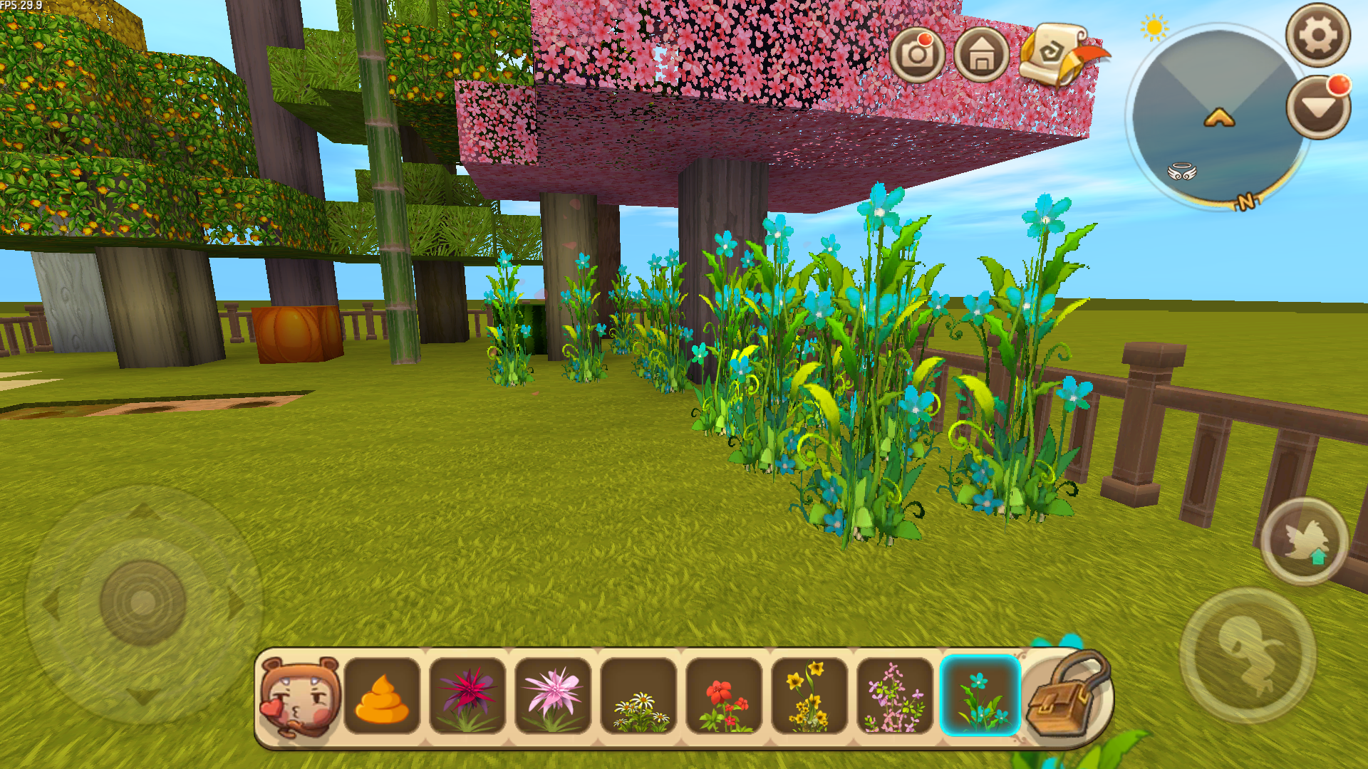 之后在植物园的左侧可以种植上各种鲜花。鲜花的种植需要将颜色相近的种植在一起,这样看起来不会显得杂乱,颜色会更加鲜明哦!