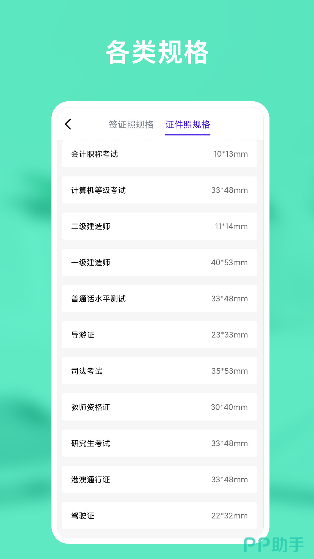 在这类可以进行图片处理的APP中,可以调整不同的照片背景,随时调整照片底色,一寸照两寸照随时定制标准尺寸,根据市场的需求,定制专业证件照片。