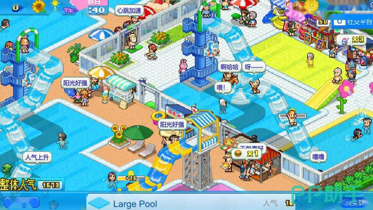 这款游戏是一款像素风格的商业经营游戏。在游戏中,玩家需要经营一个水上公园,创建各种不同类型的游泳池来满足客户的需求,并制作惊险的水滑梯来打动客户的心。在这个游戏中,玩家可以很好地与游戏中的游戏角色社交,并与游戏角色成为朋友。这是一款非常有趣的像素商业游戏。