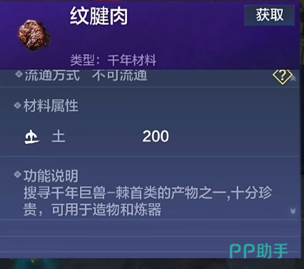 在获得众多天闪图纸之后,玩家也是需要利用一件物品将他们制作出来的,也就是纹腱肉,这个道具也是通过击杀棘首类生物获得的。越高等级的天闪需要这类道具的数量就越多。