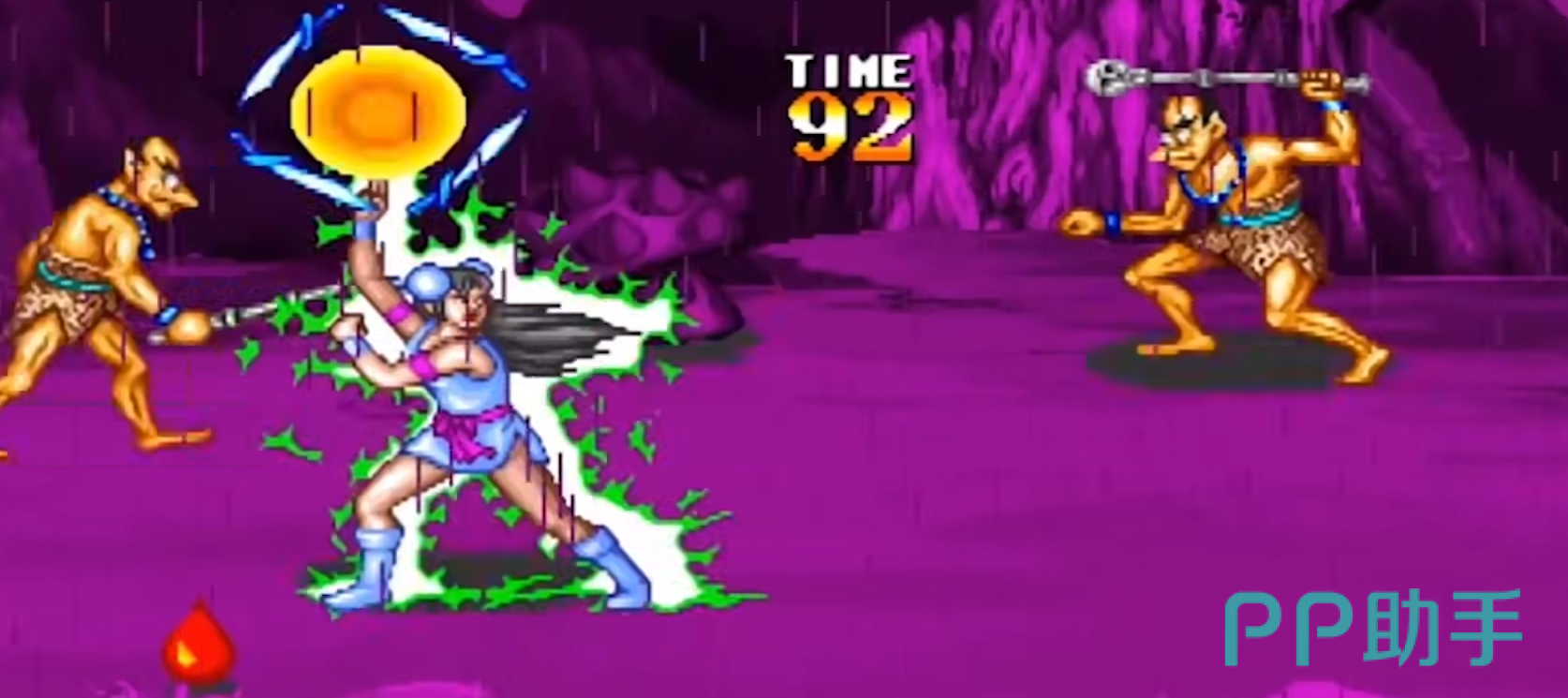 该角色是玩家最早接触的角色属性平衡适合新手玩家来玩,主要的攻击就是按A键攻击,B键跳跃用C挑选宝物,再使用D释放自己的宝物,上下左右可以移动自己的角色,有过街机经验的玩家应该都知道上上下下左右左右BABA的操作,这款游戏当然也有类似的操作。不断点击右移的按键可以开始小步跑,小跑的同时按A可以发动冲刺攻击,下B攻击发动特殊攻击,AB同时按可以保命但会扣血,ABC一起按的话是可以集和自己的气息,当集气满了之后就可以放大招和各种小技能了,左和左下和下和右下一起按之后跳跃可以释放一个特殊的技能,左右加上左右可以让人物变小,跳跃之后狂按左下或者右下攻击可以击倒敌人,右下加攻击可以释放远程攻击,大招的技巧有些复杂,基本上就是下和左右攻击的组合,玩家在集齐满足之后多多尝试才能将技能释放出来,这个需要运气和手速才能释放,玩家多练习上面的小技能就能应对九成九的敌人了。