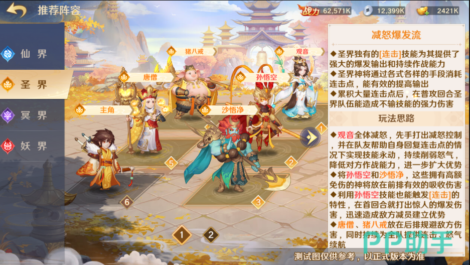 提到猪八戒相信大部分人的固有印象都是肉盾坦克类前排,但在这款游戏中却来了个大变样,变成了真真正正的辅助型角色。5级的他能够将技能的所有伤害按照百分比的形式转换成血量,返还给己方生命值最低的队友。等级到达11级时,能够提升场上所有同一阵营角色的伤害。