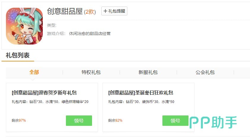 以上便是创意甜品屋的兑换码最新领取教程的全部内容,不论是从九游专题页还是APP中,大家都可以获得该游戏的最新兑换码礼包,平日里大家也可以多关注该游戏的最新动态,一般重大节日和活动节点,都会有最新兑换码放出。