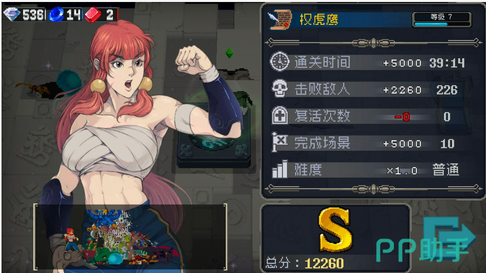 在这款地下城风格的像素格斗游戏里有个叫做权虎鹰的女性角色,这个小姐姐有着傲人的身材,二头肌、腹肌全都清晰可见,在《战魂铭人》里权虎鹰也是个不需要任何武器单凭拳脚功夫就很厉害的角色,这款手游中击败了敌人会掉落一些恢复生命的血包以及能穿戴的护膝、护手、铠甲等装备。