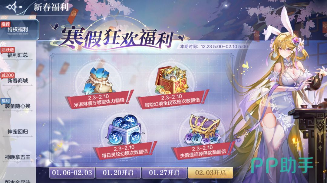 首先是各种鼓励大家爆肝的翻倍活动,包括失落遗迹,灵纹幻境在内的体力和次数翻倍,让大家可以使劲刷养成资源,然后登陆礼包自然是不会少的,给的也都是体力,金币这样的资源。