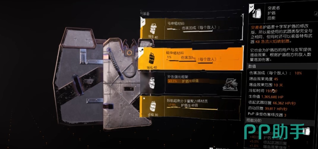 其中一个技能用盾牌,另一个比较随意,可以是蜂窝回血,或者是狙击机枪塔来打压制都是不错的选择。盾牌的配件用伤害加成,搭配变色龙,每完成1个击杀加30%的血,应对敌人的穿甲弹也能回血,很好用。