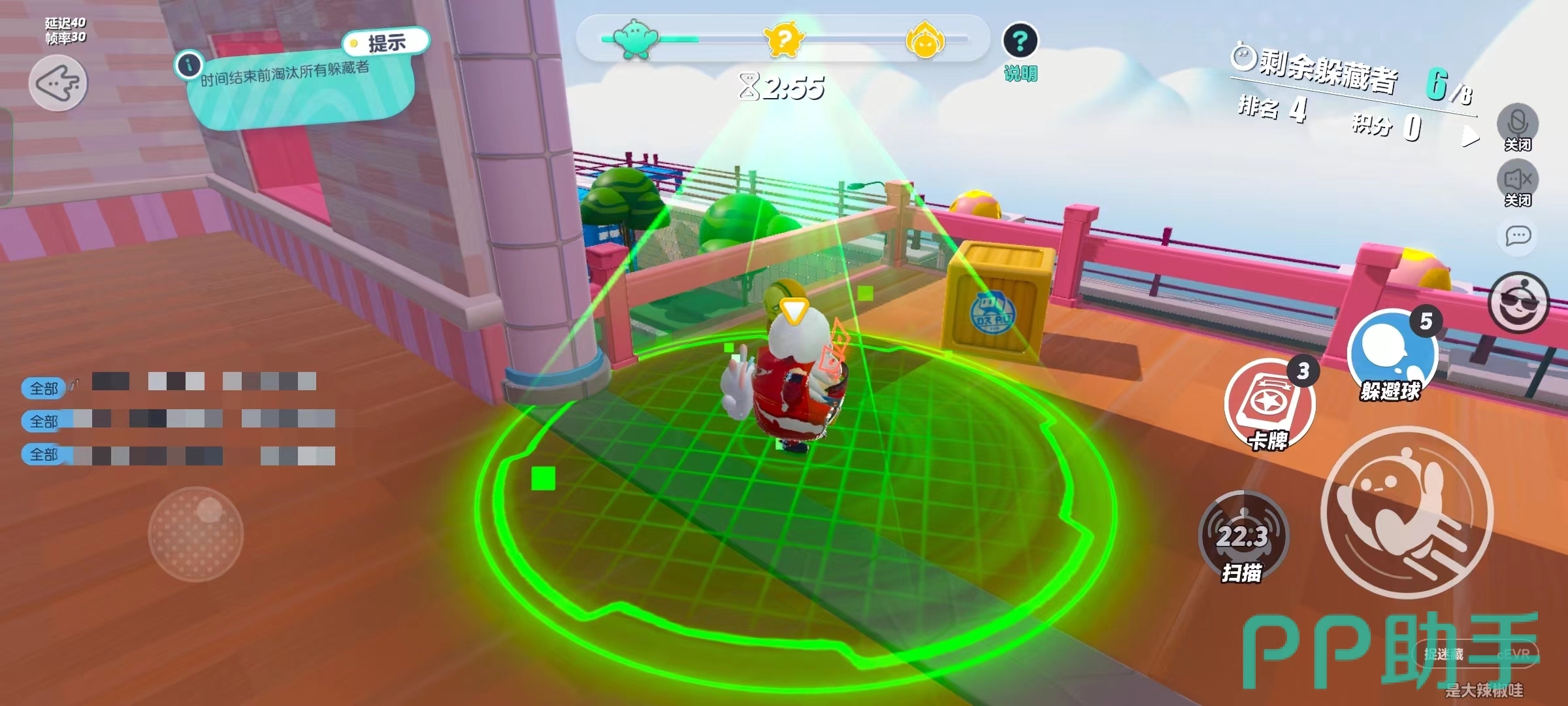 追捕者玩家还拥有扫描这个技能,开启之后会在一定时间内出现扫描框,扫描框中出现颜色变化就说明当前位置一定拥有躲藏者,因此玩家一定要好好利用扫描获得游戏胜利。