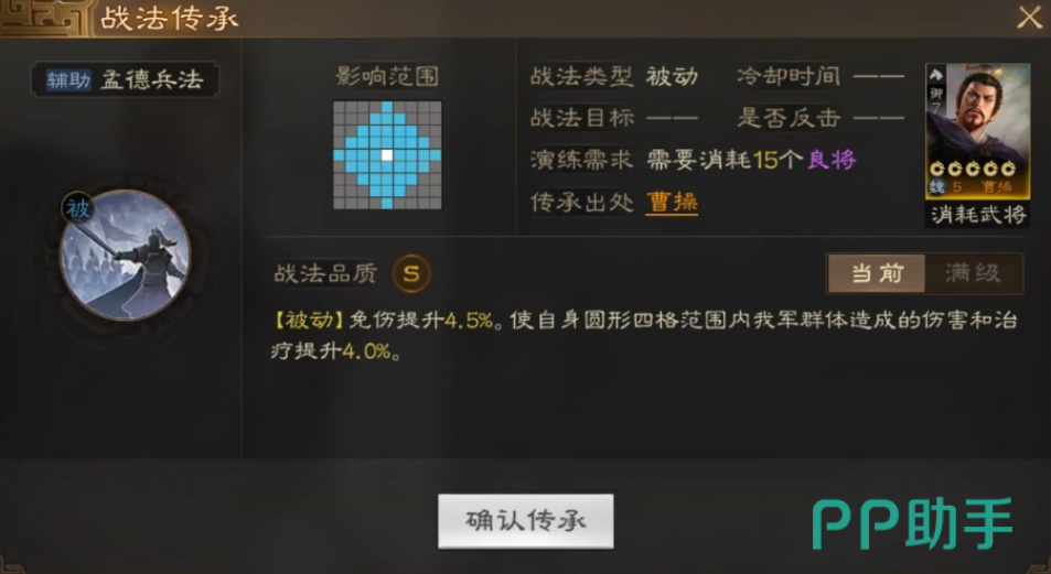 能够增加我方4.5%的免伤能力,而且周围4格的友军造成的4%伤害能够转换成治疗。