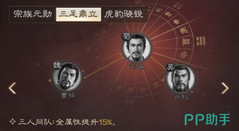 而曹操作为三国时期三足鼎立的最强势力当曹操、刘备和孙权同时上场的话队伍中三人会全属性提升15%。