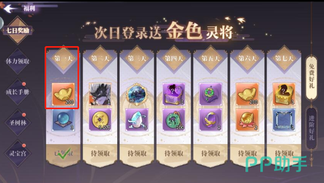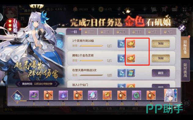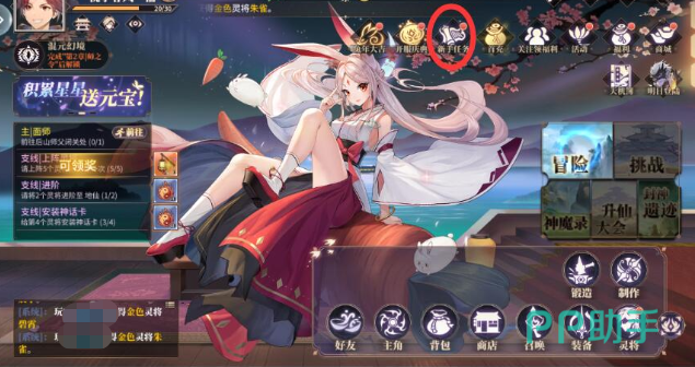首先,我们在游戏主界面的的右上方,点击一下新手任务。当玩家升级灵将、加入仙门、获得黄金灵将后,都会在此获得奖励。在规定的时限内完成第一章,或者获得一定数量的图鉴,都可以获得奖励,其中就有元宝这一项。