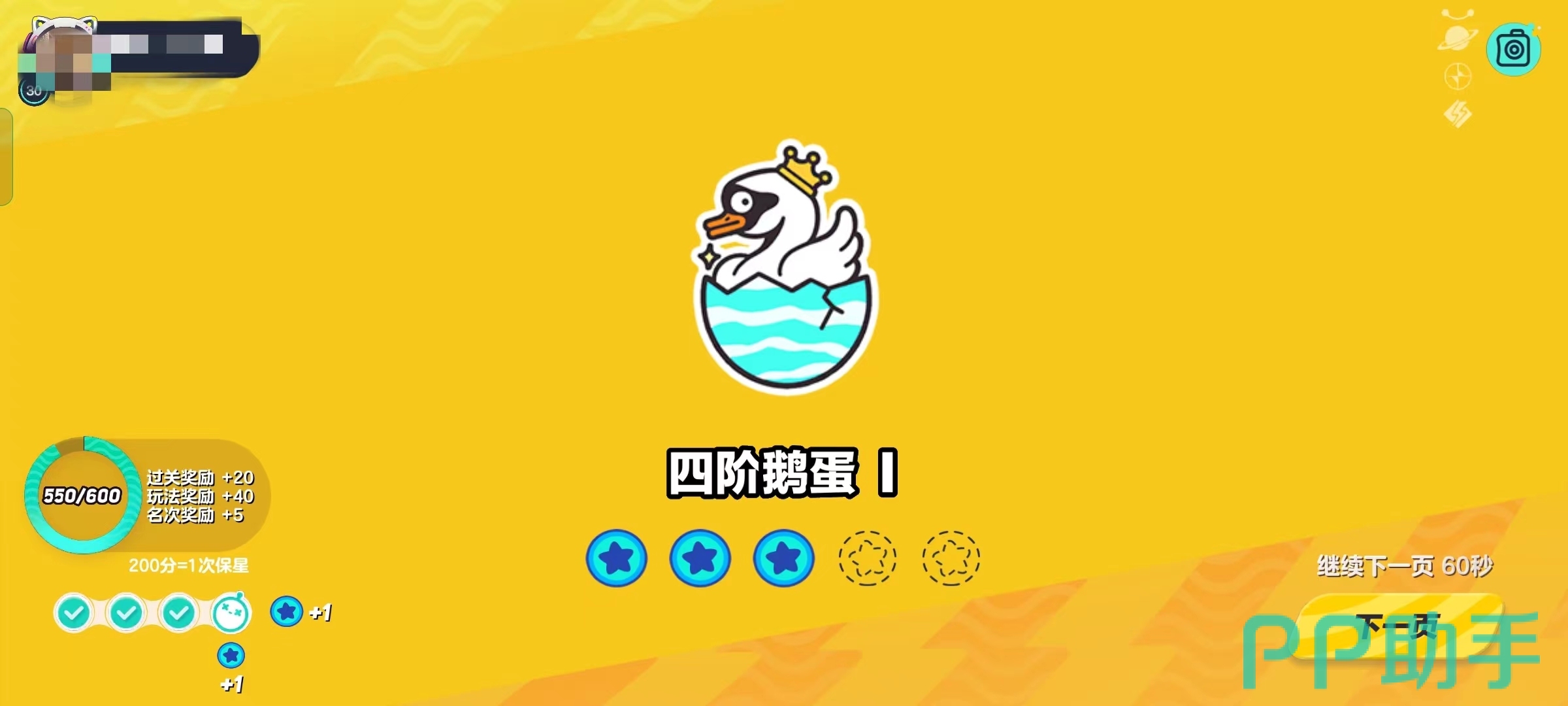 在段位当中,每一个蛋当中还被分为阶,玩家达到鹅蛋之后就会从鹅蛋四阶慢慢的往上升。升星的路途很漫长,但是只要玩家可以拿到终局之战的冠军每一次都可以加两颗星,这样算起来也还是蛮快的。