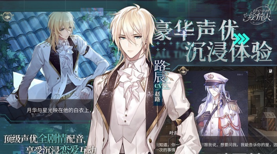 《时空中的绘旅人》中的角色说话声音特别好听,毕竟都是聘请国内一流声优配音的,玩家扮演的女主角有一项特殊的能力,可以随意穿越时空,在各种空间中跟不同形象的男性角色产生交际,甚至可以跟男性角色培养出爱情。