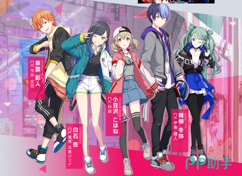 先来给大家说说第一支乐团,它的名字叫作舞台的世界。这里面的成员都是青春美少女,每一个都散发着动人的魅力。拥有水蓝色长发的少女日野森雫非常温柔,是团里面的大姐姐。看起来最活泼的棕色短发妹妹,叫花里宝乃理,心怀成为偶像的梦想,从不言弃。还有花里宝乃理的偶像桐谷遥,有着非常酷炫的形象,蓝色短发令人着迷。最后一个则是甜心妹妹桃井爱莉,漂移的粉色长发炫彩夺目,是团里的可爱担当。