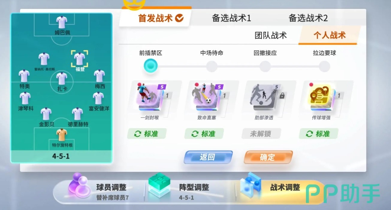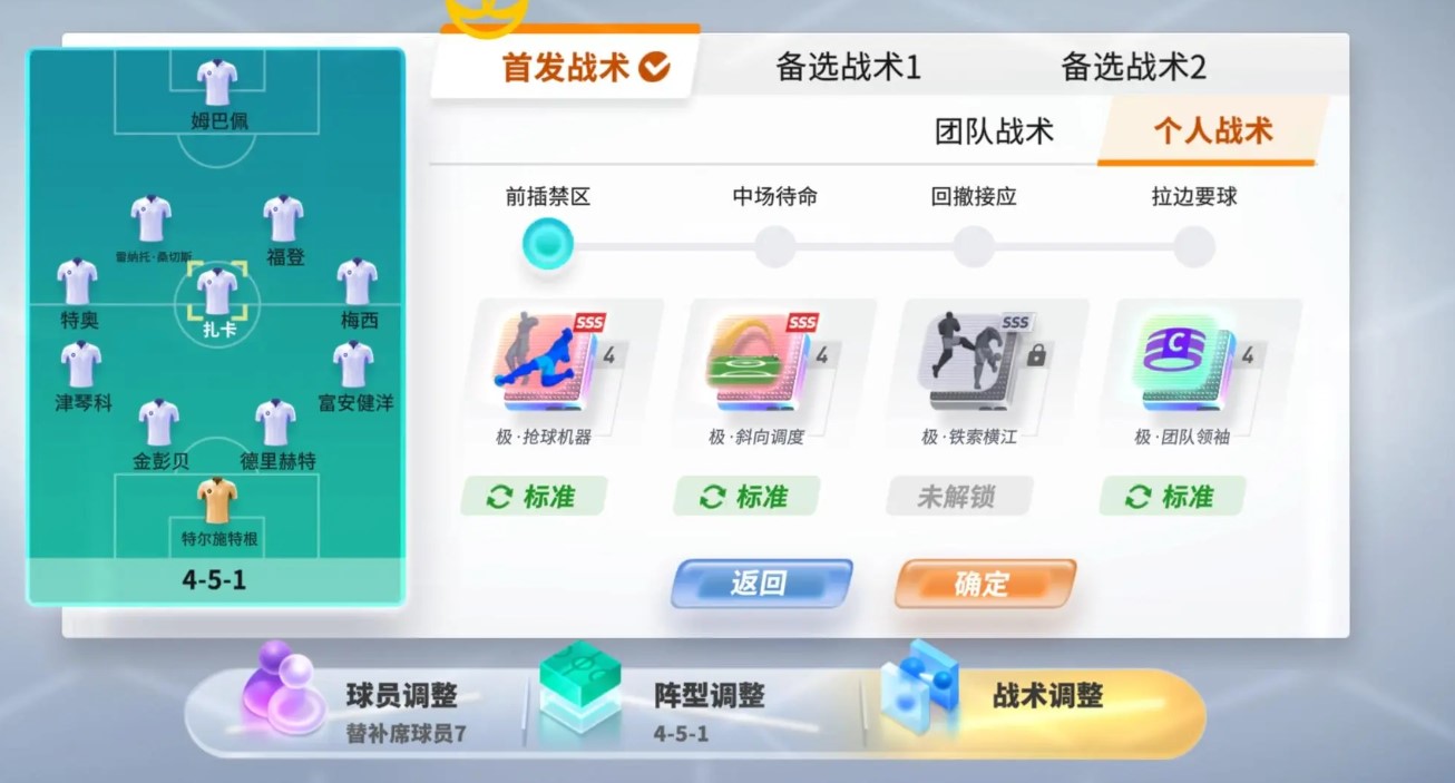 前锋福登选择前插禁区,搭配一剑封喉、致命直塞、传球增强。中场梅西无球套边,搭配孤胆英雄、内切利刃、花式过人。扎卡选择前插禁区,搭配抢球机器、斜向调整、团队领袖。后场富安健洋选择深入参与,搭配盲区巡回、抢球机器、抢断增强。后卫德里赫特在解围的时候尽量不要造成死球,搭配盲区巡回、云罗天网、拦截增强。整个下来这套阵容体验相当不错,哪怕是和一些高玩也能打一打,很少会出现一边倒的情况。目前来看如果遇到442或者343阵型容易被克制,其他阵型的话倒是没有明显克制。