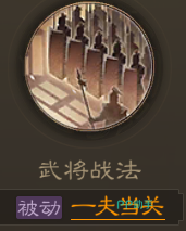 “一夫当关”则是典韦自带的传承战法,这个战法是很适合搭配在他本人身上的,因为它可以直接降低周围最多三格范围内敌军的移动力和伤害,这些进一步提升了其本人的坦度。所以综合来看,典韦无论是属性还是自带战法都会更加偏向于免伤,以及利用反击和减益来对敌人造成威胁,因此针对这两点,在其余战法的搭配上,小编给大家推荐“凿堑安营”,“百折不挠”,“铜围铁马”和“御敌屏障”这几个。