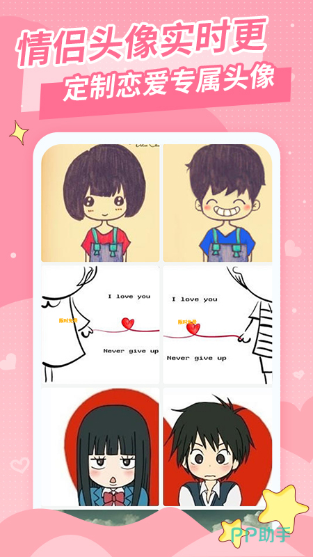 个性情侣头像在线制作,让用户在社交平台上展现出最美的自己。自助DIY选择头像挂件,各类贴纸以及爱豆的自拍,街拍照,还有不同系列的壁纸和头像可以选择。