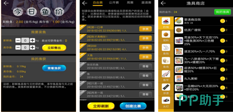 这款手游会让玩家真实了解到钓鱼带来的乐趣,玩家可以拿着自己的渔具去很多海域钓鱼,玩家需要自己组合鱼竿上的鱼线、鱼饵、鱼钩这些组件,垂钓上来的所有鱼类都可以卖出去,兑换成游戏里的金币,使用金币能够购买更好的鱼竿。这款钓鱼游戏有着不错的画面,给玩家带来一种真实在钓鱼的感觉。