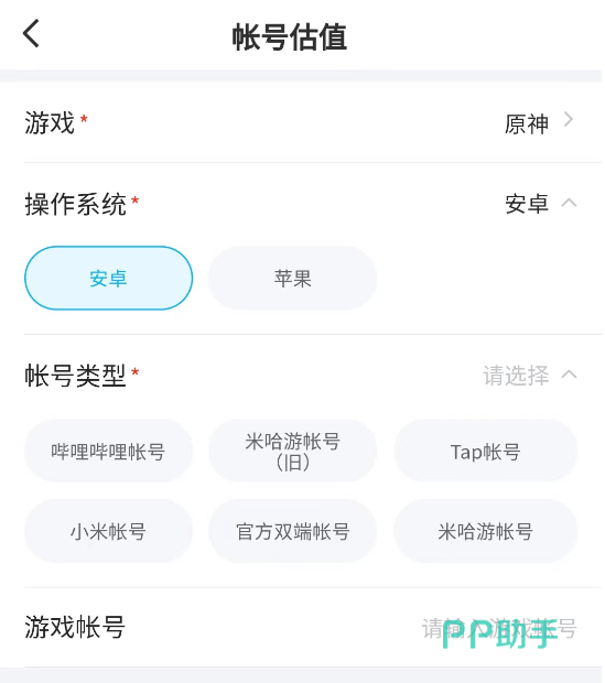 在交易猫里面完全可以享受自助式服务,要想对原神账号进行估价的话,找到【免费估价】并将基础信息输入进去就可以,小编建议尽量填的齐全一些,哪怕是一些比较冷门的五星角色也要补充进行,因为账号出售价格高低主要还是围绕角色跟武器来,等级只能算得上是附加点,这里估价给出的金额相对中肯,小编也亲自拿某个账号的价格和外面对比过。
