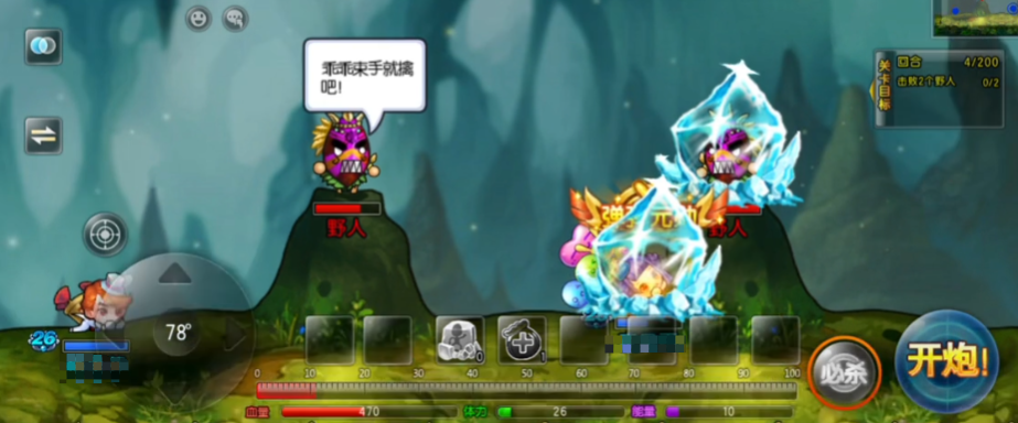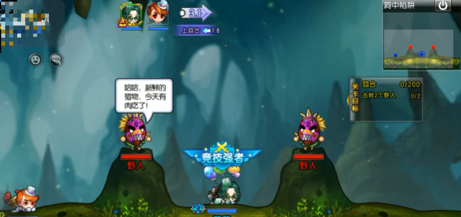 而这个关卡里需要给打的是两个野人,这个关卡里并不是玩家一个人作战的,还会有一个帮手,他在与各位作战的时候还会给出一些建议,就比如他会建议玩家与其先同时攻击其中一个目标,这样可以将伤害最大化。