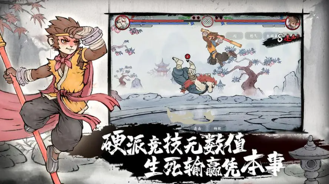 在游戏中对水墨风格和西游人物进行了结合,能够让玩家在游戏中体验到一个硬核的竞技,需要玩家有着非常快的手速,属于格斗游戏里面难度比较高的,但是整体的游戏表现非常的优秀,人物之间的技能平衡也非常的不错,是一个值得体验的游戏。