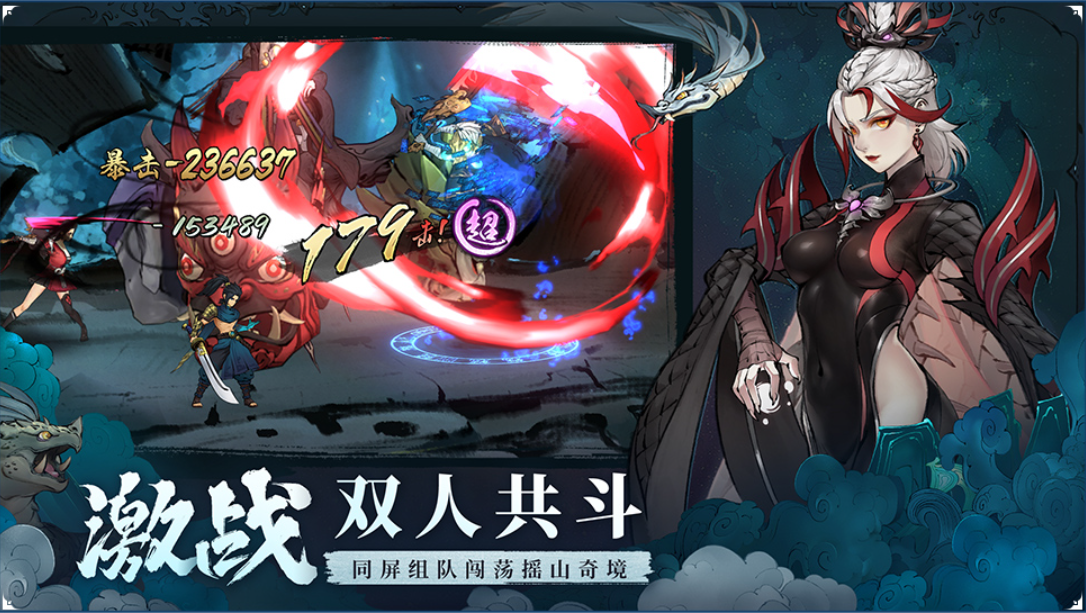 游戏中所有的人物和场景都是手绘而成,能够让玩家感觉到人物和场景的活灵活现,在游戏中为了能让玩家有更好的体验,游戏增加了组队对战这一模式,让玩家可以和朋友一起体验游戏中刺激的打斗,还有古籍传说在游戏中展示。