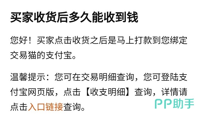 因为平台绑定的支付宝收款,在买家下单购买商品之后我们能够即时收到钱,另外我们还能够在支付宝的账单中查询到款项动态,并不像其他平台一样先转到平台中在自己提取。通过平台带有的一系列服务还可以帮助我们避免售后中出现的一些麻烦,可以说是非常棒了。