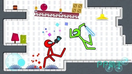 这就是一款拥有最经典味道,最原始玩法和动作射击的火柴人格斗手游,在二维的地图之中,通过2D的视觉,来进行1v1或则是组队的多人乱战,你需要去地图中拾取随时刷新的武器,但是开局之前的武器选择,也会成为获胜的关键,特别是在1v1的玩法之中,从光剑到机械火炮臂,还有雷神之锤等等武器,都是最火的选择,同时在连续点击攻击按钮之后,还会出现火柴人武器的专属连招,一方被击飞浮空数秒之后,就会被打出虚弱状态,而且四肢和头,也会慢慢见红,最终被对手所斩杀。