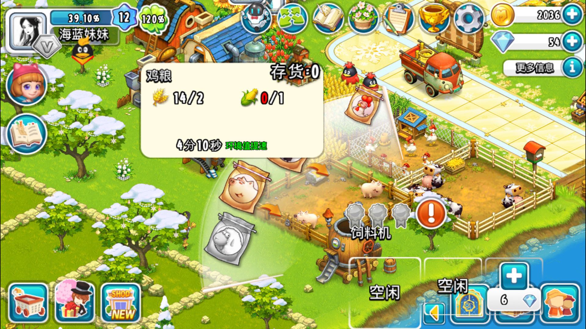 1、首先我们要建造一个鸡舍,一个鸡舍可以养六只鸡,一只鸡10金币,很便宜有木有!
