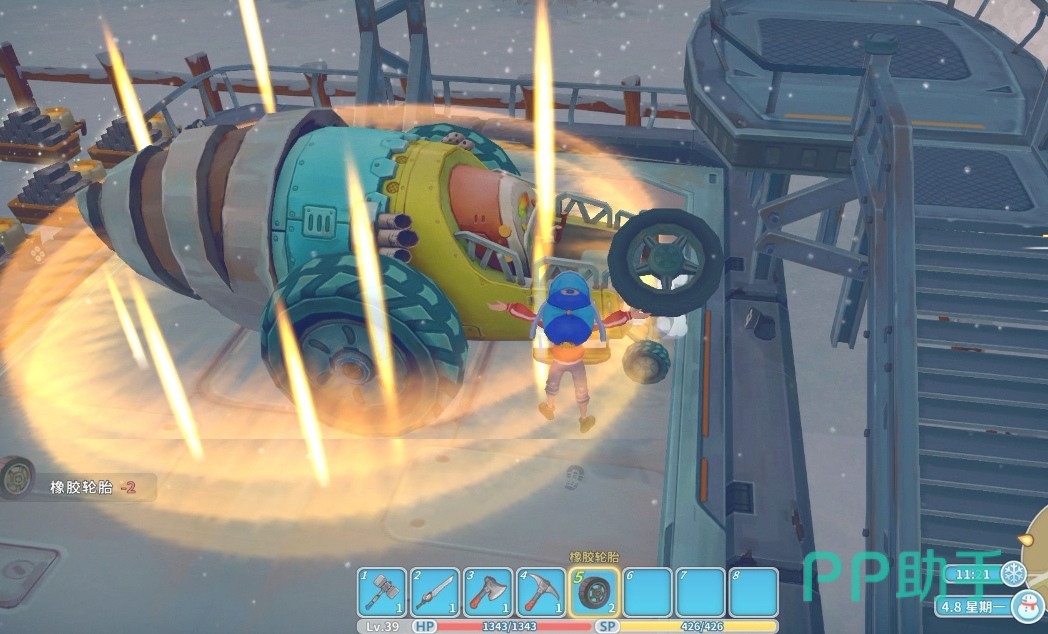 其中的大型轮胎和操作板都是可以通过工作台吱吱吱获得的,虽然操作板的制作过程有些复杂,得要用到小型芯片,但是总的来说也不用花费太多时间,而大型砖头则是邮件本身附带的,剩下一些材料,系统都会告诉玩家要去什么地方获得,按照提示进行就可以了。