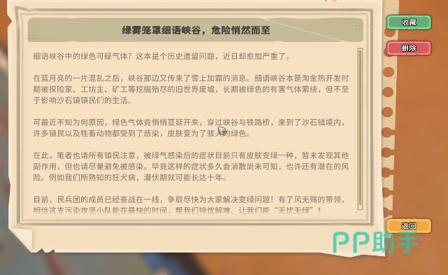 还有一种可能玩家想要进入细语峡谷的话是要完成官方设定的任务,玩家要在细语峡谷里清除造成污染的污染源,这个地方还存在着一些变异生物,因此小伙伴们如果要完成这个任务找细语峡谷的话还要带好武器才行。